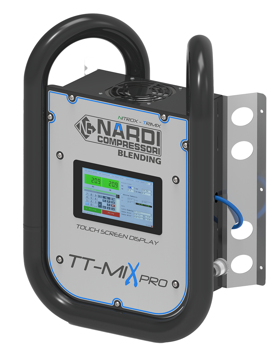This is the only control unit in the world, making Nitrox and Trimix blends completely automatically. TT-MIX PRO, the innovative mixer patented by NARDI COMPRESSORI, performs blends set by the operators directly on the 7" touchscreen via the integrated Nardi Blender software. You will find the simplicity, precision, and functionality to make blends and top ups with this device astonishing.